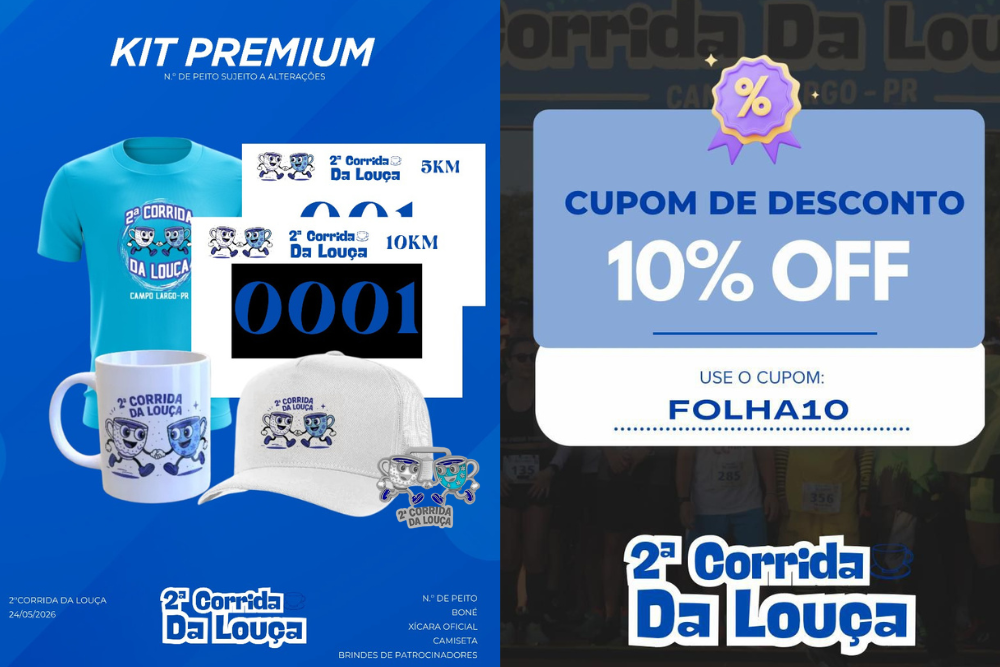 A segunda edição da Corrida da Louça, em Campo Largo, já movimenta atletas e entusiastas do esporte com uma proposta ampliada, mais estruturada e com expectativa de público superior à estreia. Marcada para acontecer no dia 24 de maio, a prova chega com novidades no percurso, categorias e kits, além de um incentivo direto aos leitores da Folha, que terão 10% de desconto nas inscrições com o cupom FOLHA10.