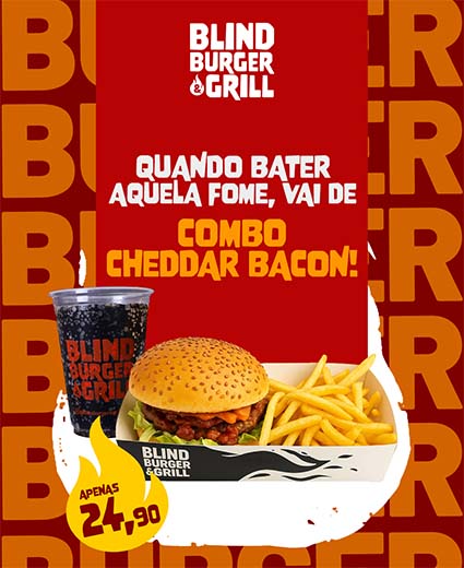 Siga no Instagram: @blindburgeregrill.oficial. Peça pelo WhatsApp, Ifood e https://blindburger.menudino.com/. Acesse o site: https://www.blindburgeregrill.com.br/.