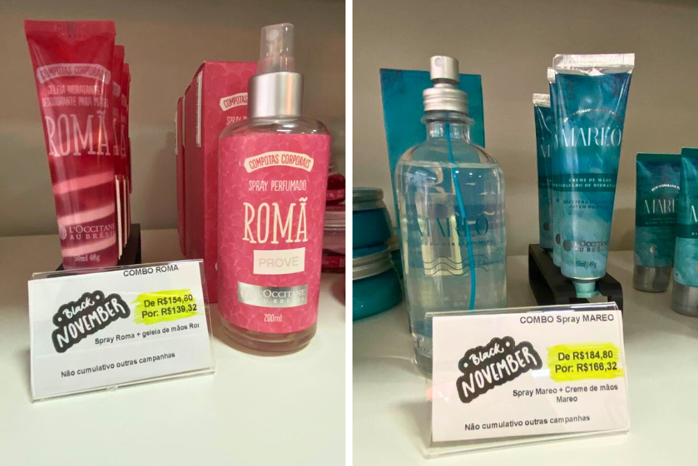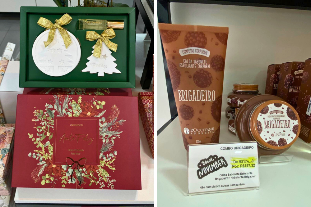A loja se destaca ao trazer uma vasta linha de produtos da L’occitane au Brésil, com combos de Romã, Brigadeiro e Mareo, que tem uma grande procura, assim como a linha O.U.i Paris, com fragrâncias sofisticadas e desenvolvidas por perfumistas franceses. Linhas do O Boticário, Eudora e Natura estão com preços ainda mais especiais, tanto em cremes, fragrâncias, sabonetes e desodorantes.